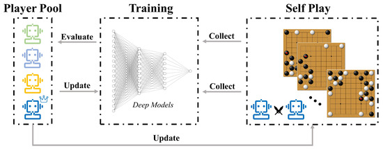 - Tian, Y.; Ma, J.; Gong, Q.; Sengupta, S.; Chen, Z.; Pinkerton, J.; Zitnick, L. Elf OpenGo: An analysis and open reimplementation of AlphaZero. In Proceedings of the International Conference on Machine Learning, Long Beach, CA, USA, 10–15 June 2019; pp. 6244–6253. [Google Scholar]
