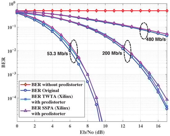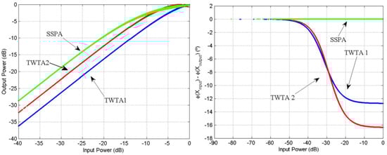 The TWTA has been used with and [10], while the SSPA used is the NEC GaAs Power Amplifier used for standardization with parameters: , , , , , and [10].