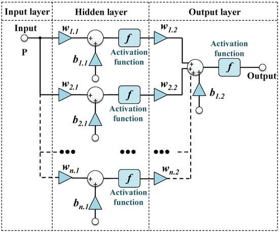 where P is an input vector , W is set of synaptic connections also known as the set of weights these weights multiply the input to get and b is the added bias to . For the MLP NN hidden layer, is the number of inputs of each neuron, is a tribas function (TWTA) and is a radial basis function (SSPA) while for the MLP NN output layer in case of TWTA, in case of SSPA and is a linear function.