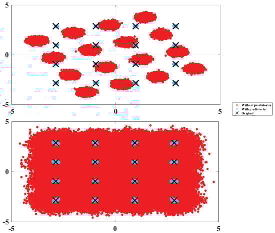 In Figure 12, it can be concluded that using the proposed NN pre-distorters, the constellation is like the original signal without distortion, which will greatly improve the bit error rate.