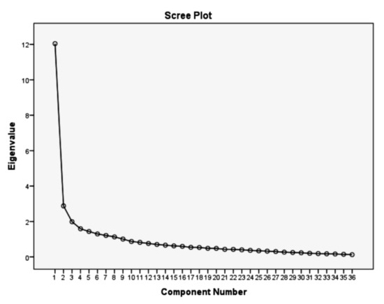 Accuracy, accessibility, adequacy, assurance, assistance, availability, attentiveness, communication, completeness, commitment, credibility, convenience, efficiency, delivery, currency, ease of use, expectation, format, flexibility, integration, fulfillment, product information, price, precision, product offerings, relevancy, quality, reliability, user-friendliness, security, accountability, pace, training, timeliness, website design, and usefulness are 36 aspects that have been previously extracted from reviewing the comprehensive literature in the information systems field [37,38,39,40,41,42,43]. Thus, EFA [44,45], which is mainly recognized as a procedure to generate theory, is employed, aiming to lessen the number of main aspects by identifying the basic factors that illustrate the majority of variance [46].