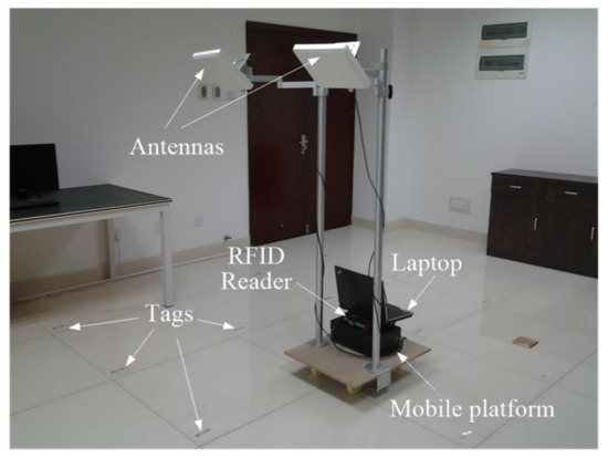 By interrogating the specifically deployed passive RFID tags, recording tags response, and combing the positions of RFID tags, the position of RFID reader or mobile platform carrying RFID reader can be obtained in a unique manner [5]. Owing to the specific answer range of passive RFID tags, an RFID-based indoor positioning scheme may provide more accurate positioning results compared to other wireless positioning indoor schemes [6,7]. Since the RFID reader and tag are becoming cheaper and cheaper, the RFID-based positioning scheme shows great potentials in meeting the trend of RFID applications.