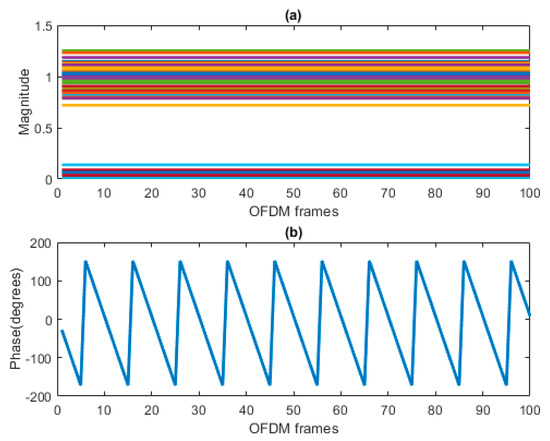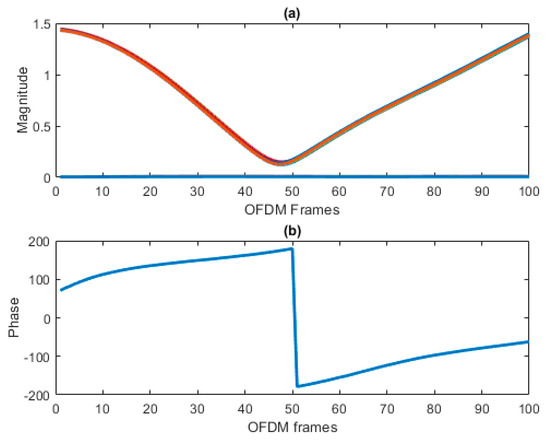 The magnitude and phase response of the multiple OFDM frames is expressed in the Equations (21) and (22).