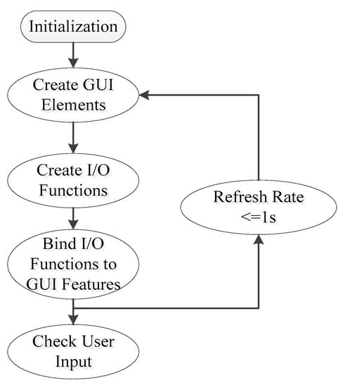 Figure 7. After initialization of the GUI program, once the main user interface is loaded and displayed, the GUI program refreshes and changes every second based on user inputs and environment adjustment.