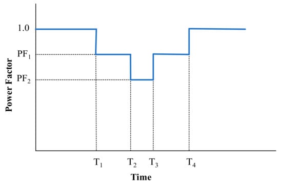 - For the scheduled PFC, 0.99 and 0.97 leading power factors were assigned for the PF1 and PF2 values, while 8.5, 9.5, 14.5, and 15.5 h were selected for the T1, T2, T3, and T4 values.
