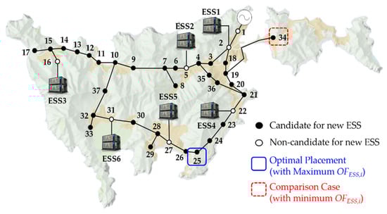 In this paper, the objective function for the optimal installation placement of the ESS is shown in (11), and the optimal installation placement is determined by priorities according to an analysis of all candidate placements for the new installation of the ESSs.