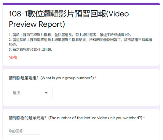 - Inter-class activities: In order to ensure that all students actively participated in in-class activities, before each class, they were required to watch two video units. These videos were the main channels for students to gain knowledge of the course content. The teacher extracted key points from the textbook to make PowerPoint slides and adopted such slides in the video to explain the main concepts and gave examples. For these examples, the teacher would demonstrate the problem-solving process on the digitizer tablet, as shown in Figure 5. Through such a step-by-step process, students understood the problem-solving process and clarified the concepts and ideas to solve relevant problems. Students could interrupt the video after solving the problem and practice again by themselves to deepen the impression. Figure 6 is a video preview report made by the teacher through the Google form. Students with difficulties in self-learning could watch the video with other students in the same group. After acquiring the subject content of the lecture video during the process of inquiry and discussion, students could fill in the form, and the group would get one point. When all members of the group have completed the recording, the score for the group on the unit was doubled. After watching the video, students could further explore the subject content by reading the textbook and completing the questions therein.