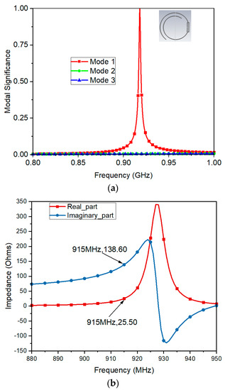(a) Modal significance plot of proposed tag structure (b) The simulated real and imaginary impedance plot of proposed logarithmic near-field tag design.
