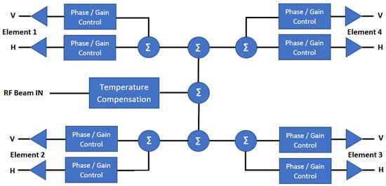 One key difficulty in the design of Ka-band Satcom front-ends is the compact and cost-effective integration in a single PCB of the antenna elements with the high number of active and passive radio frequency (RF) components such as low noise amplifiers (LNAs), power amplifiers (PAs), phase shifting devices, hybrid couplers, etc., that require not only good thermal handling but also considerable mounting space and adequate power consumption. The maturity reached by microwave monolithic integrated circuits (MMICs) and the latest advances in silicon technologies such as SiGe or CMOS have helped to address this challenge for a large-scale deployment [7,8].