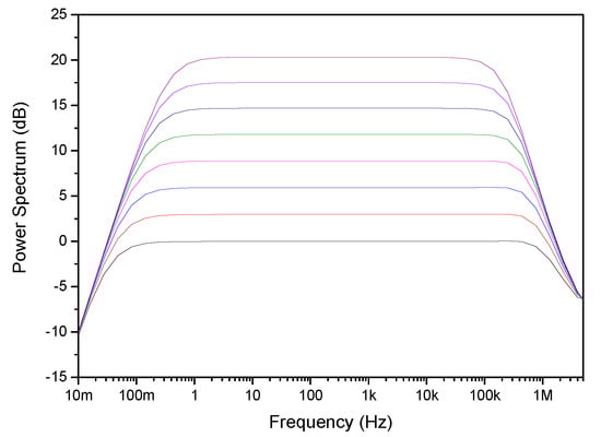 Simulation results of frequency response of the proposed preamplifier for all gain settings.