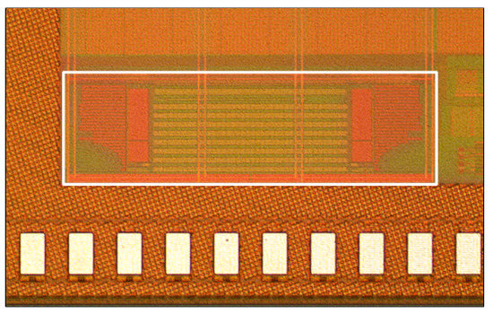 The proposed preamplifier was fabricated using a 28 nm CMOS technology. Figure 13 shows the chip microphotograph of the fabricated circuit. The white rectangle in Figure 13 indicates the preamplifier and the active area occupied by the preamplifier is 0.19 mm2.