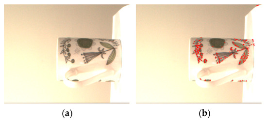 (a) A 640 × 480 image for evaluating the proposed E-SIFT; (b) feature points detected.