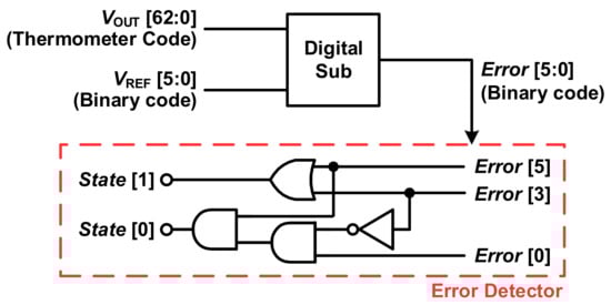 A digital sub is introduced to generate the error between the and . Because the output of the TDC-based converter is thermometer code and the reference voltage is binary, the digital sub contains a encoder to convert the output of the TDC-based converter to binary codes. The entire digital sub is implemented by Verilog and logical synthesis.