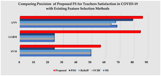 Comparing Precision of Proposed FS for Teachers Satisfaction in COVID-19 with Existing Feature Selection Methods.
