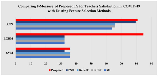 F-Measure Comparison of Proposed FS for Teachers Satisfaction in COVID-19 with Existing Feature Selection Methods.