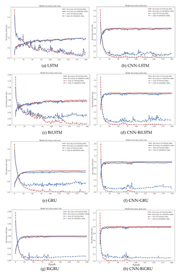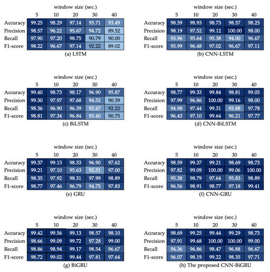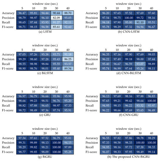 - Using four baseline recurrent neural network (RNN) models (LSTMs, BiLSTMs, GRUs, and BiGRUs) and various hybrid DL models, we evaluated fundamental recognition performance indicators (accuracy, precision, recall, F1-score, and confusion matrix) for these DL models.