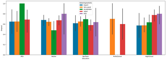 Dropout rates depending (a) on education level and (b) on current digital proficiency.