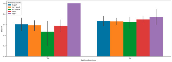 The interdependent relationship between current digital proficiency and previous MOOC experience and their impact on MOOC dropout.