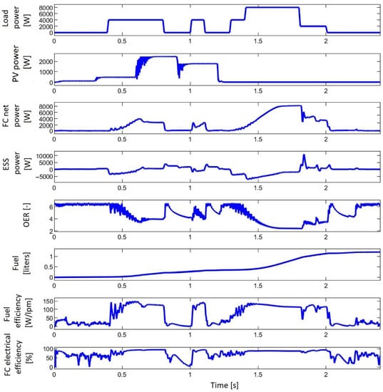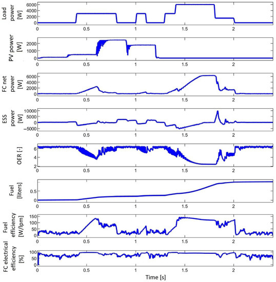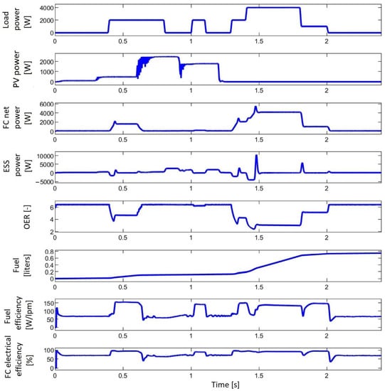 Figure 10. The behavior of the PV/FC/ESS system using strategy S2 in the scenario SC2.