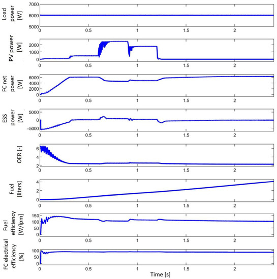 Figure 9. The behavior of the PV/FC/ESS system using strategy S0 in the scenario SC2.