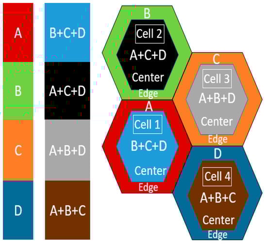 - Huang, J.; Li, J.; Zhao, L.; Huang, S. CoSFR: Coordinated soft frequency reuse for OFDMA-based multi-cell networks with non-uniform user distribution. Wirel. Netw. 2017, 23, 2037–2050. [Google Scholar] [CrossRef]
