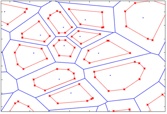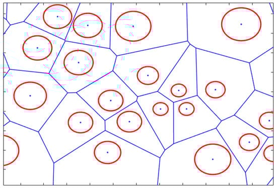 Inputs: Set of all SCs (Z), Co-ordinates of the center of SC c (xc, yc), Co-ordinates of all the vertices of SC c (xvc, yvc), Ratio of the SC radius (rrad) Output: Co-ordinates of the center zone of SC c 1: For each SC c in Z 2: if irregular center zone 3: For each vertex of SC c 4: Calculate distance between each vertex and the center of the SC c () as in Figure 6 5: Calculate radius of the center zone ) = * 6: Draw the line connecting this vertex to the center of the SC c 7: Draw the circle whose center is the center of the SC c with radius 8: Find = the intersection between the line in step 6 and the circle in step 7 9: end For 10: else if circular center zone 11: For each vertex of SC c 12: Calculate distance between each vertex and the center of the SC c () as in Figure 7 13: end For 14: Find minimum 15: Calculate radius of the center zone of SC c () = * minimum 16: Draw the circle whose center is the center of the SC c with radius 17: Find = all the points on the circle in step 16 18: end if 19: end For |