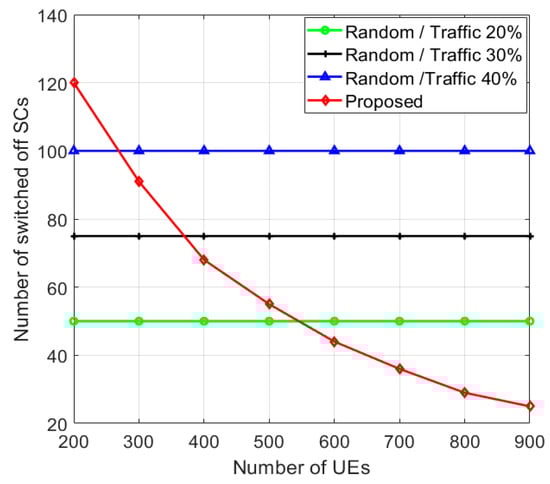 - Off: if the number of UEs in SC c which is = 0, and SC c is then added to (which is the set of SCs that should be switched off).