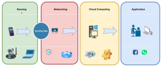 - Cloud Computing: Heterogeneous IoT is accurately handling the large amounts of data with cloud computing. Its main function is to receive and transmit data to and from other architecture layers [46]. Strong analytical computing, storage of data, emergency response strategies and efficient decision making are the advantages of cloud computing.