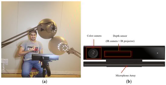 Acquisition environment and system: (a) Recording room, and (b) Kinect V2 device.
