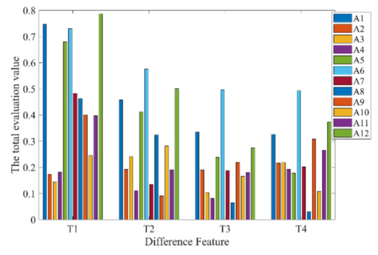 Then, the total evaluation value of the amplitude of difference feature T1 to algorithm Ai is expressed as follows: