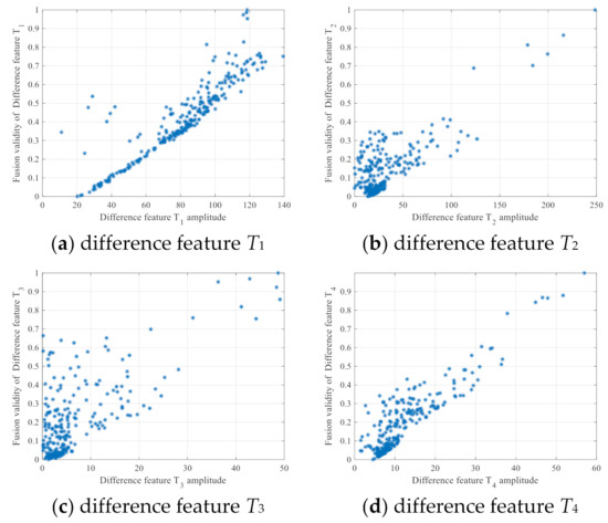 Thus, we can obtain fusion validity scatterplot of the four difference features, as shown in Figure 13.