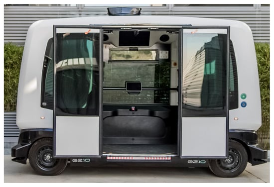 The selected vehicle for this work is a 2014 EZ-10 model from LIGIER. The vehicle, which can be seen in Figure 1, is an electrical shuttle that carries up to 12 passengers. The platform integrates its own low-level control based on a double Ackermann geometry that improves maneuverability in narrow spaces. Nevertheless, it must be clarified that this low-level control only generates the proper signals to produce the speed, acceleration and steering angle commands sent by the high-level control interface implemented in this work to govern the vehicle.