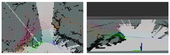 After removing the non-desired points from the point cloud, a ground removal filter is applied to detect and to remove the points of the ground, leaving the points of the objects that might be obstacles. The results of this last filter are shown in Figure 13.