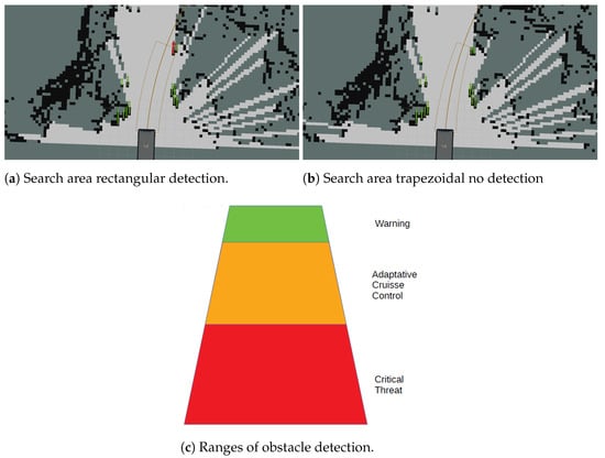 To complete this task, the first module is the sensor awareness in which the data produced by the sensors is analyzed to know if the sensor is running and working properly. This module checks the frequency of the message for each sensor published and the content of its data. On one hand, for each LiDAR, the frequency is 10 Hz and the data gathered should be at least the minimum set of points that hits the road. To count the points, several experiments have been carried out in which each sensor is covered by an opaque blockage. Because the LiDAR Point Cloud in the nearby space is filtered as described in Section 3.5.1, the data flow upstream in the architecture will receive zero points. The sensor awareness detects this anomaly and sends the proper flag to the movement manager to stop the vehicle immediately since a level one anomaly is happening. On the other hand, the IMU awareness checks the rate is over 30 Hz and its data are not the same in a time taking into account the sensitivity of the sensor is high. Furthermore, the DGPS awareness is based on the rate (bigger than 4 Hz) and the information provided of the covariance provided with its message that should be at least, with a certain time, accurate enough (that is lower than a threshold). Due to some DGPS coverage lost in some sections of the experimentation environment, the time threshold calculated in which no DGPS signal is received is no longer than 5 min. In the case that this is not fulfilled, the Sensor awareness will be sent the stop signal to mark a level two critical risk.
