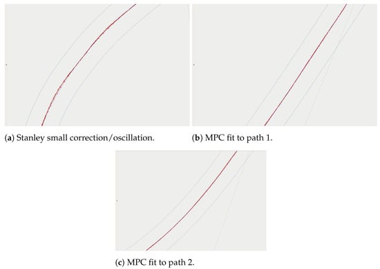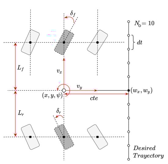 - Hoffmann, G.M.; Tomlin, C.J.; Montemerlo, M.; Thrun, S. Autonomous automobile trajectory tracking for off-road driving: Controller design, experimental validation and racing. In Proceedings of the IEEE 2007 American Control Conference, New York, NY, USA, 9–13 July 2007; pp. 2296–2301. [Google Scholar]