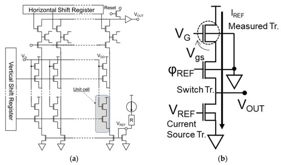 - Kumagai, Y.; Abe, K.; Fujisawa, T.; Watabe, S.; Kuroda, R.; Miyamoto, N.; Suwa, T.; Teramoto, A.; Sugawa, S.; Ohmi, T. Large-Scale Test Circuits for High-Speed and Highly Accurate Evaluation of Variability and Noise in Metal-Oxide-Semiconductor Field-Effect Transistor Electrical Characteristics. Jpn. J. Appl. Phys. 2011, 50. [Google Scholar] [CrossRef]