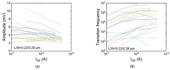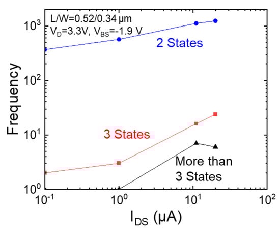 3.4. Effect of Drain Current on Appearance Probability and Amplitude