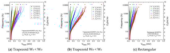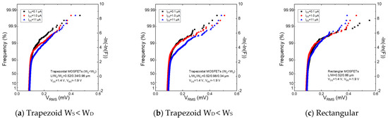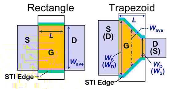 - Akimoto, R.; Kuroda, R.; Teramoto, A.; Mawaki, T.; Ichino, S.; Suwa, T.; Sugawa, S. Effect of Drain-to-Source Voltage on Random Telegraph Noise Based on Statistical Analysis of MOSFETs with Various Gate Shapes. In Proceedings of the 2020 IEEE International Reliability Physics Symposium, 28 April–30 May 2020; p. 9A2. [Google Scholar]