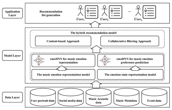 - The application layer. In this layer, the proposed method generates music recommendation lists for users.