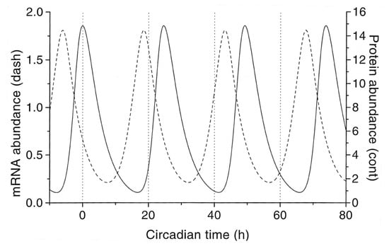 The mRNA and protein abundance oscillation across a certain period of circadian time.