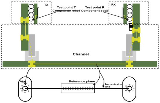 Due to the development and improvement of single channel rate from 10 Gbps to 25 Gbps [,,,], the requirements for high-speed system circuit design are also increased. The current research and development of high-speed systems mainly focuses on two aspects: (1) increasing the transmission rate without sacrificing the reliability and stability of the system; (2) the control of production cost [,]. To achieve single channel 25 Gbps rate transmission on the circuit, the operating frequency of the system will inevitably exceed 12 GHz, which means that the traditional circuit interconnection design has difficultly guaranteeing the transmission performance of a high-speed system. Signal integrity problems, such as reflection and crosstalk, in high-speed circuit design have serious impacts on circuit performance [].