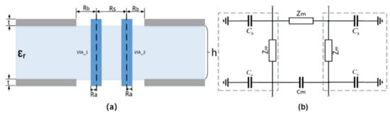 - Kok, P.A.; De Zutter, D. Prediction of the excess capacitance of a via-hole through a multilayered board including the effect of connecting microstrips or striplines. IEEE Trans. Microw. Theory Tech. 1994, 42, 2270–2276. [Google Scholar] [CrossRef]