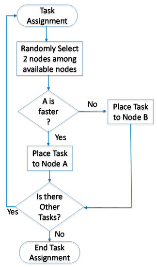 - In previous studies [5,6,17], the processing time of each task is the same by default. However, in reality, each node’s performance can differ in multiple ways, that is, different hardware and processors are used for different nodes. In this study, we considered the different computation times of tasks on nodes.