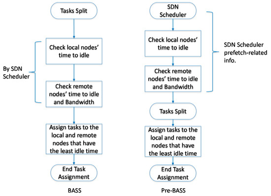 Flowchart of BASS (bandwidth-aware scheduling) and Pre-BASS.