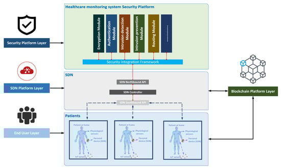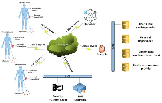 - Khayat, M.; Barka, E.; Sallabi, F. SDN_Based Secure Healthcare Monitoring System (SDN-SHMS). In Proceedings of the 2019 28th International Conference on Computer Communication and Networks (ICCCN), Valencia, Spain, 29 July–1 August 2019; pp. 1–7. [Google Scholar]