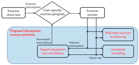 As a result, the proposed platform helps the patient exercise while maintaining the initial goal by adjusting the exercise program, even if the patient’s condition or exercise sensitivity changes from when receiving an exercise prescription. This paper presents the hardware configuration, the exercise stress test for adjustment of the exercise program, and the user application of the proposed platform.
