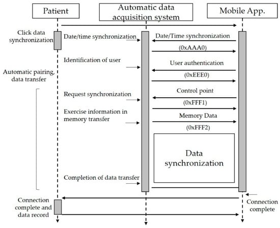 The data synchronization process between aerobic equipment and smartphone application in the proposed therapeutic exercise platform.
