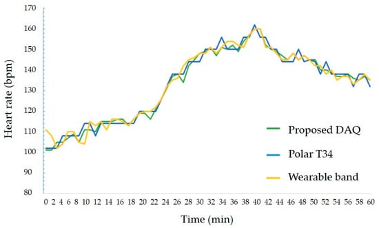 - The proposed DAQ device collects exercise information during exercising: instantaneous exercise speed every second, heart rate every minute.