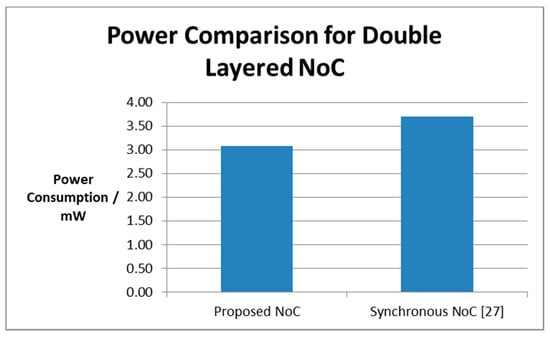 The power comparison showing the overall reduction for the proposed double-layer NoC.