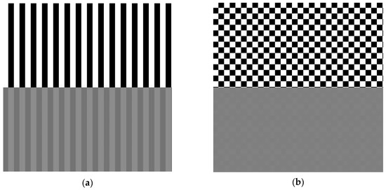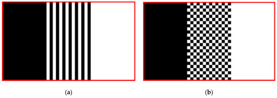 The conventional ternary Gray-code method has been proven to be effective at reducing the required number of coding patterns. However, since it only utilizes 1D modulation, the method may have limitations considering defocusing effects and the noise problem. To improve its robustness, in this paper we propose to use 2D modulation to generate the intermediate gray level. The basic principle is shown in Figure 2. To clearly demonstrate the difference, 2D patterns containing three gray levels (i.e., black, gray, and white) for the conventional and improved ternary Gray-code methods are respectively shown in Figure 2a,b.